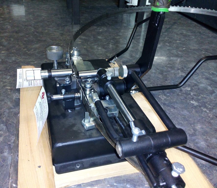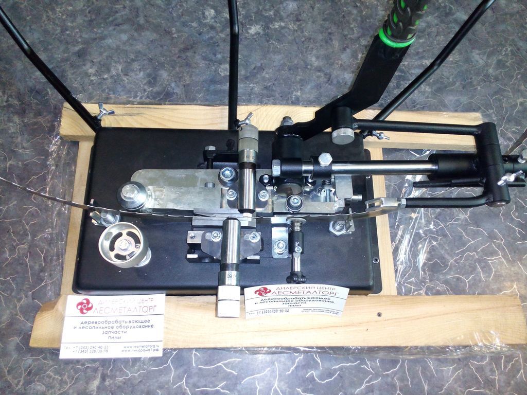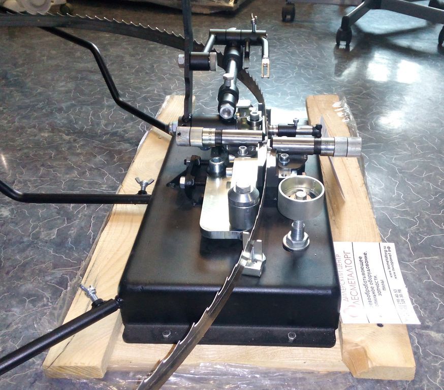 Разводной станок для ленточных пил, двухсторонний, полуавтоматический.