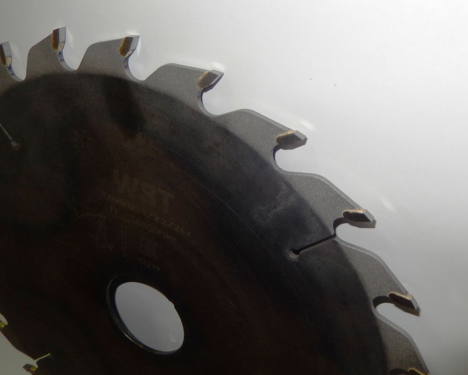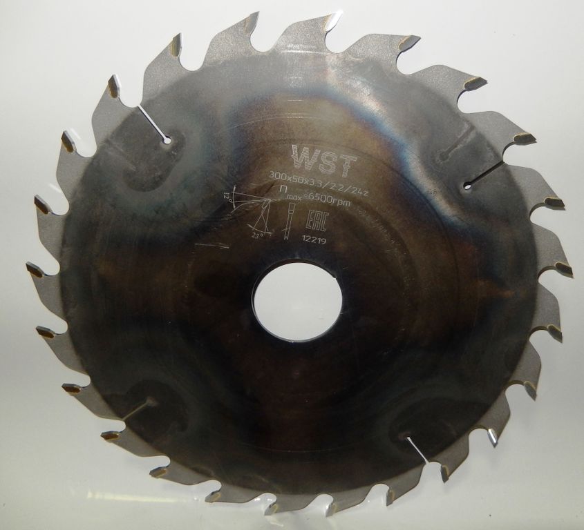 Пильный диск диаметром 300мм имеет 24 зуба с твердосплавными напайкам. Посадочный диаметр диска 50мм, возможна поставка пильных дисков с другими посадочными диаметрами.
