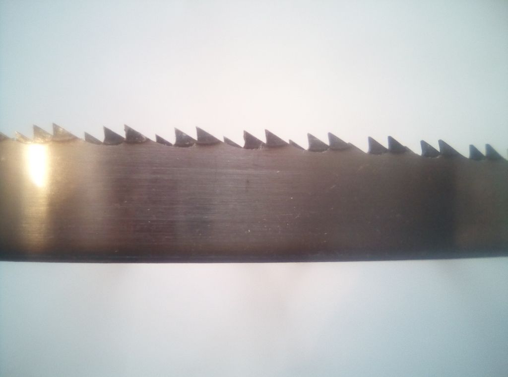 Ленточные пилы изготовлены из специальной стали для пищевых продуктов. Ленточное полотно имеет закаленный зуб, зубья заточены и разведены.
